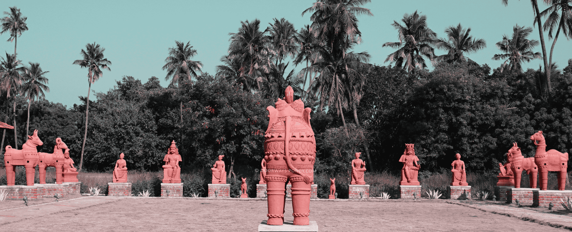 One of the must-see tourist destinations in Pondicherry, especially for art enthusiasts, is the Art and Craft Village Pondicherry, spread over 4 acres and situated on the banks of the Chunnambar backwaters close to Murungapakkam. The prime motto of this art and craft village is to rejuvenate the forgotten crafts and art forms of India and to uplift the lives of talented artists and artisans. There are about 24 stalls where the artefacts are on display, and you can also witness the live making of the products. The artefacts are for sale, which you can take back to your loved ones as a souvenir of your visit to this art and craft village. You can find various different artefacts such as terracotta, pottery, coconut shell carvings, stone carvings, seashell carvings, scented candles, leather chappals, handmade lanterns, handloom bags, swings, handcrafted paper products, paintings, realistic animal sculptures, 3D human statues made of wax, clay, or fibre, and the list goes on. Bulk orders and customization orders on all kinds of artefacts are also accepted.