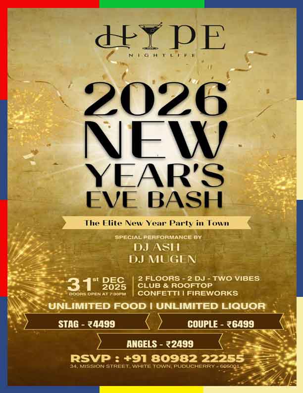From the first beat to the final countdown, this is where Puducherry’s finest gather to toast new beginnings in style.*conditions apply